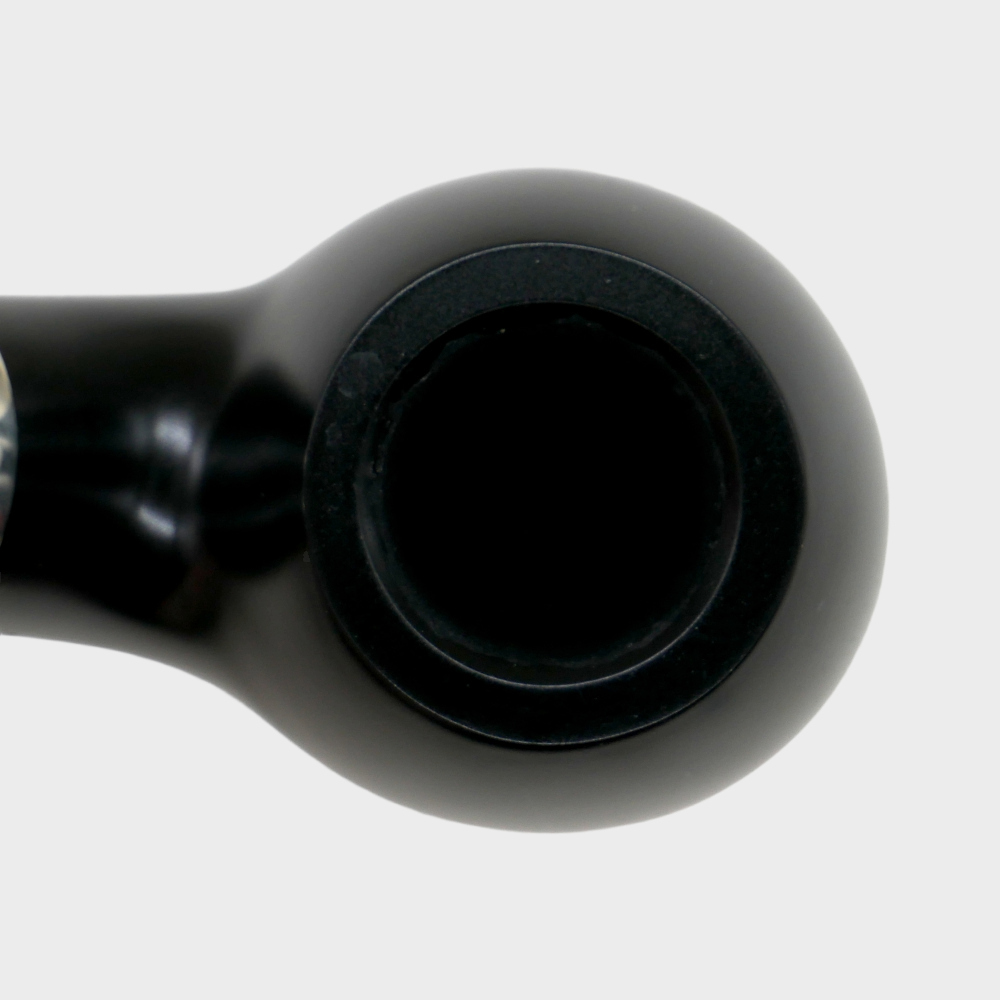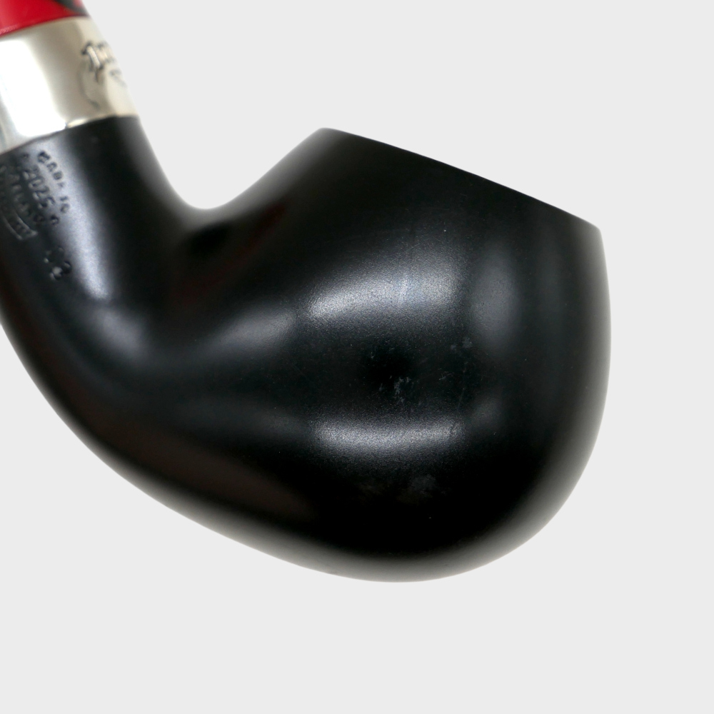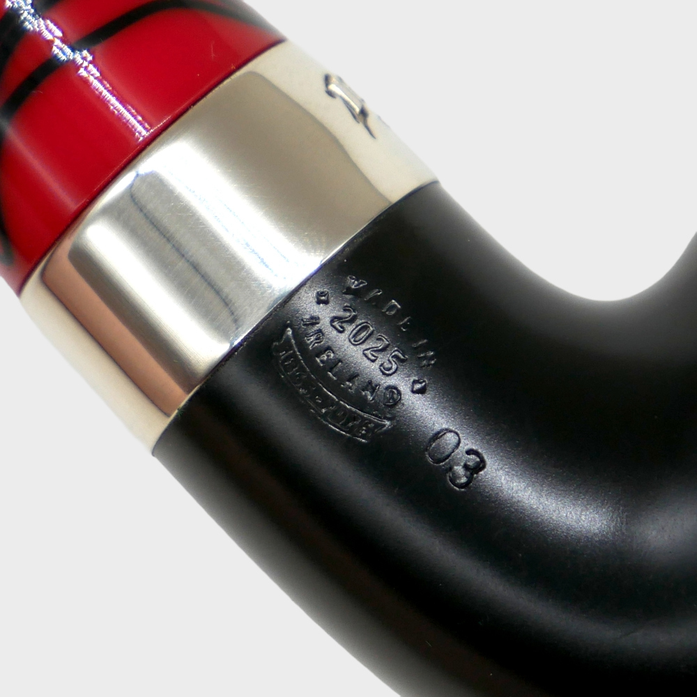 Sitting beautifully between the flawless black ebony bowl and the striking red and black marbled fishtail mouthpiece, there is a perfectly proportioned nickel band with the Dracula name etched on to it.