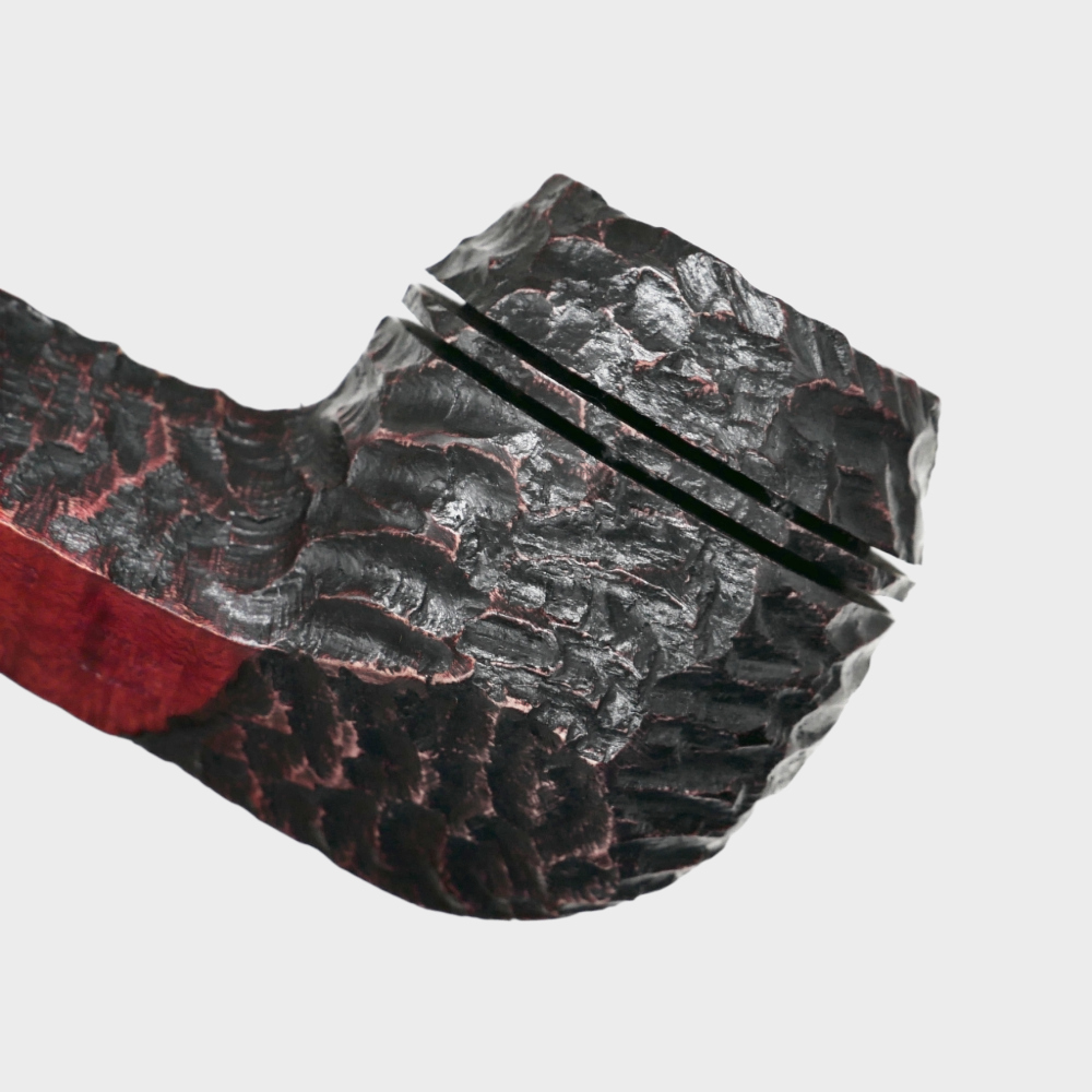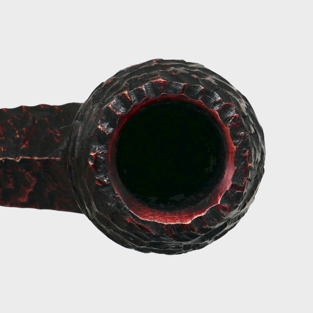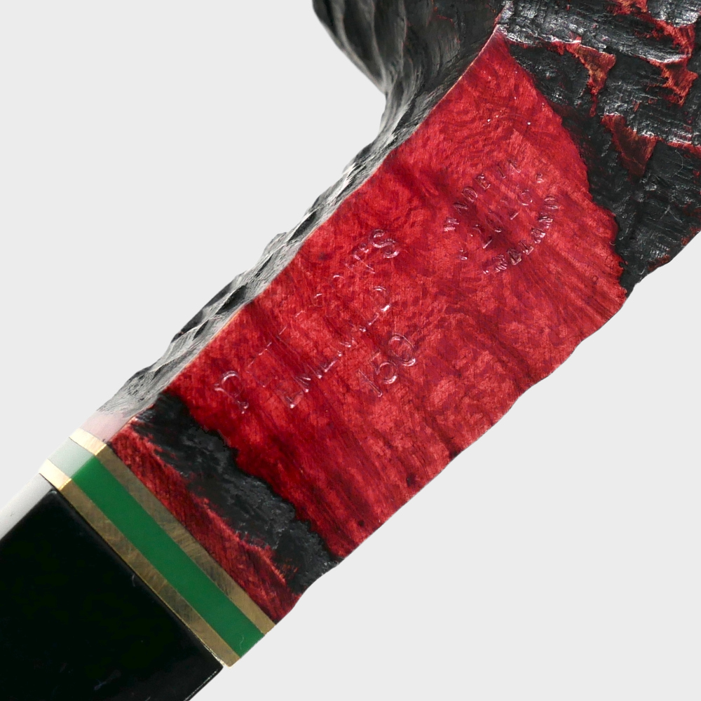 The Peterson Emerald Rustic Pipe range is made from specially selected hand carved briar in black with red hues and a twin gilt and emerald band.