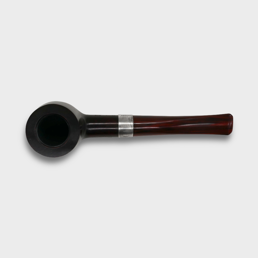 The Peterson Harp pipe is a rich dark brown colour, beautifully set off by a Cumberland Fishtail mouthpiece. Each pipe is silver mounted with a harp, the symbol of Ireland, stamped on the mount, which also has the legend 'Peterson of Dublin, Irish Harp'.
