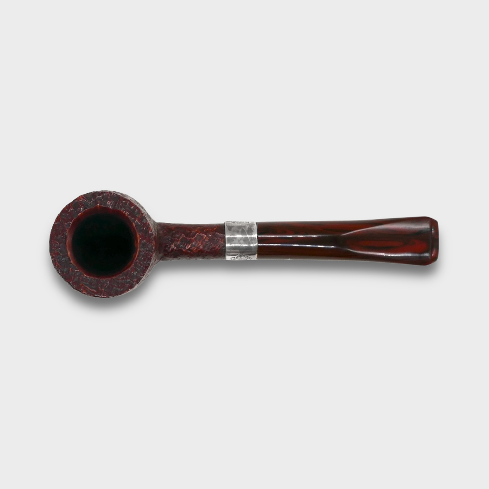 The Peterson Harp pipe is a rich dark brown colour, beautifully set off by a Cumberland Fishtail mouthpiece. Each pipe is silver mounted with a harp, the symbol of Ireland, stamped on the mount, which also has the legend 'Peterson of Dublin, Irish Harp'.