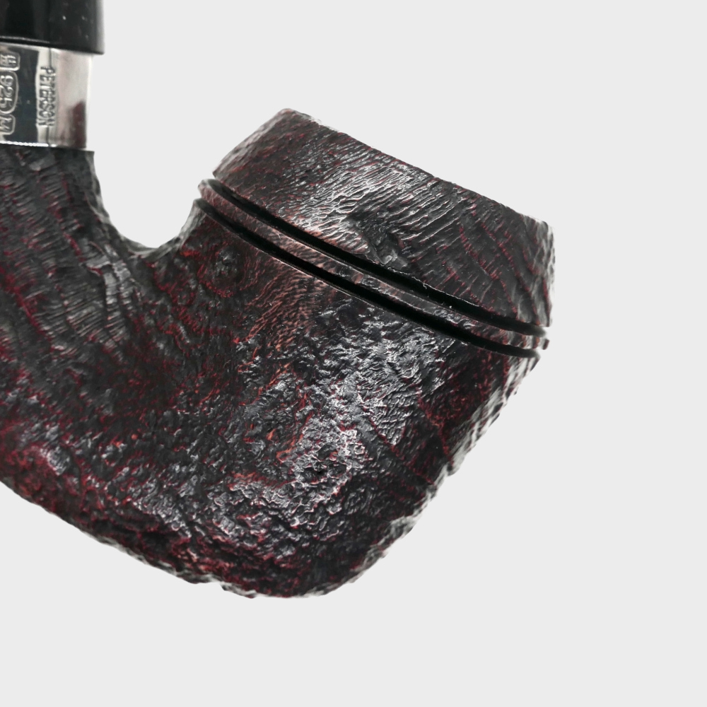 Each pipe is hand stamped with the shape name and is finished with a Sterling Silver band, Peterson ‘P’ and a Peterson Lip Mouthpiece.