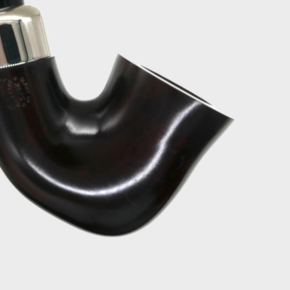 Designed to provide a cooler, drier smoke, each pipe features a deep reservoir within the shank to collect excess moisture; a graduated bore mouthpiece that funnels the smoke and allows moisture to collect within the reservoir; a sturdy nickel military mount, which allows the pipe to be broken down and cleaned without damage or warping; and our patented P-Lip bit, which draws the smoke upward, thus reducing tongue bite. While the P-Lip bit is the traditional choice, we also offer System Standard pipes with fishtail stems.