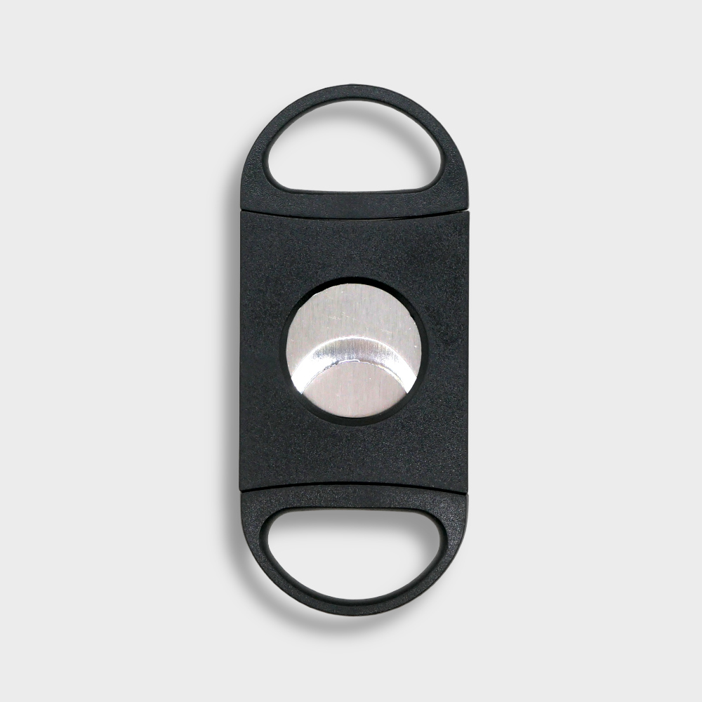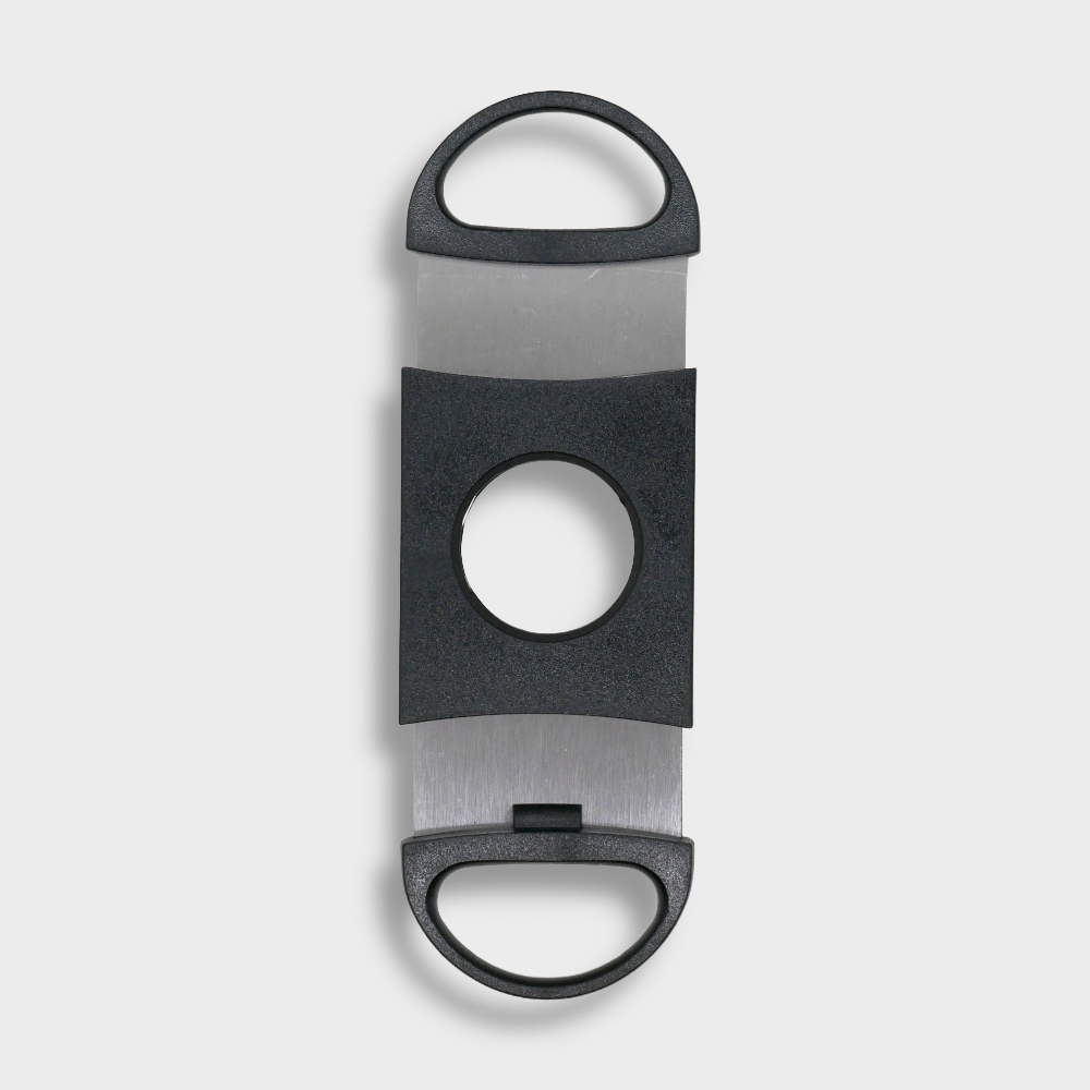 Twin blade, black plastic cigar cutter, easy to use with plastic panel to ensure the right cut. Very reliable and affordable.