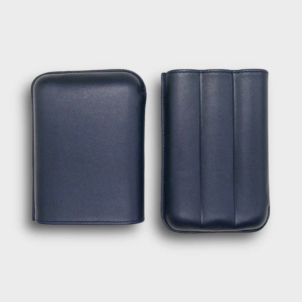 Recife Chesterfield Culture Space Blue Leather Cigar Case - 3 Cigar Capacity