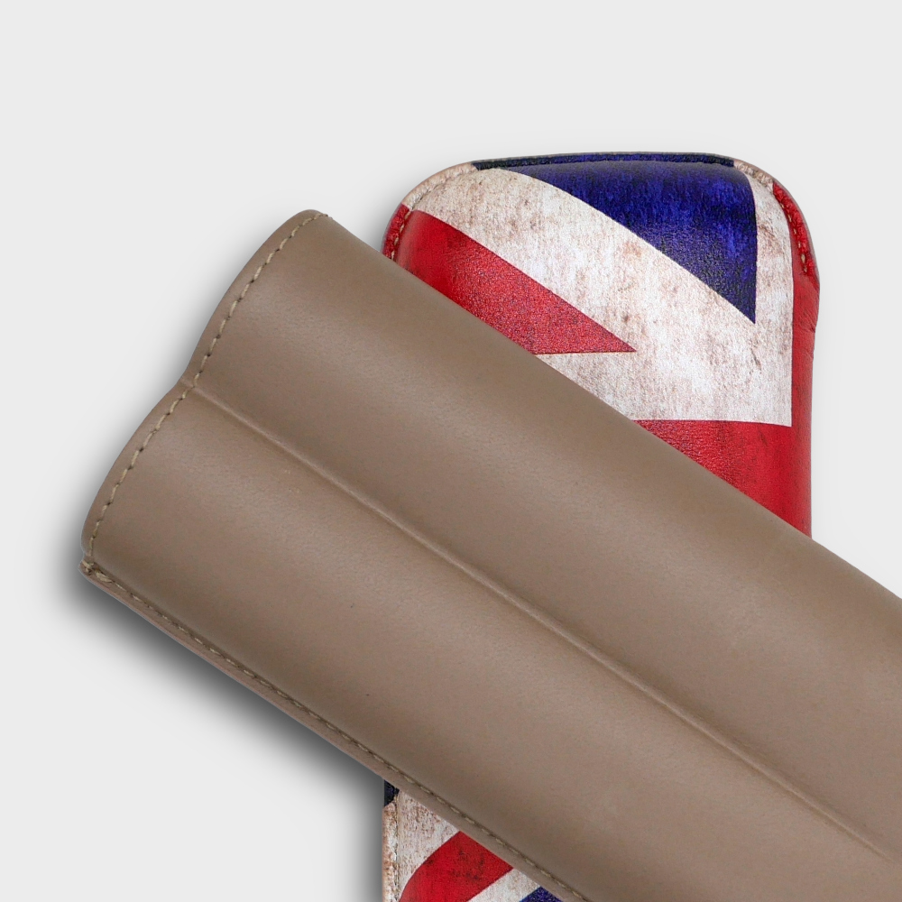 Recife Special Edition Union Jack Flag Base Cosy Cashmere Cigar Case - 2 Cigar Capacity