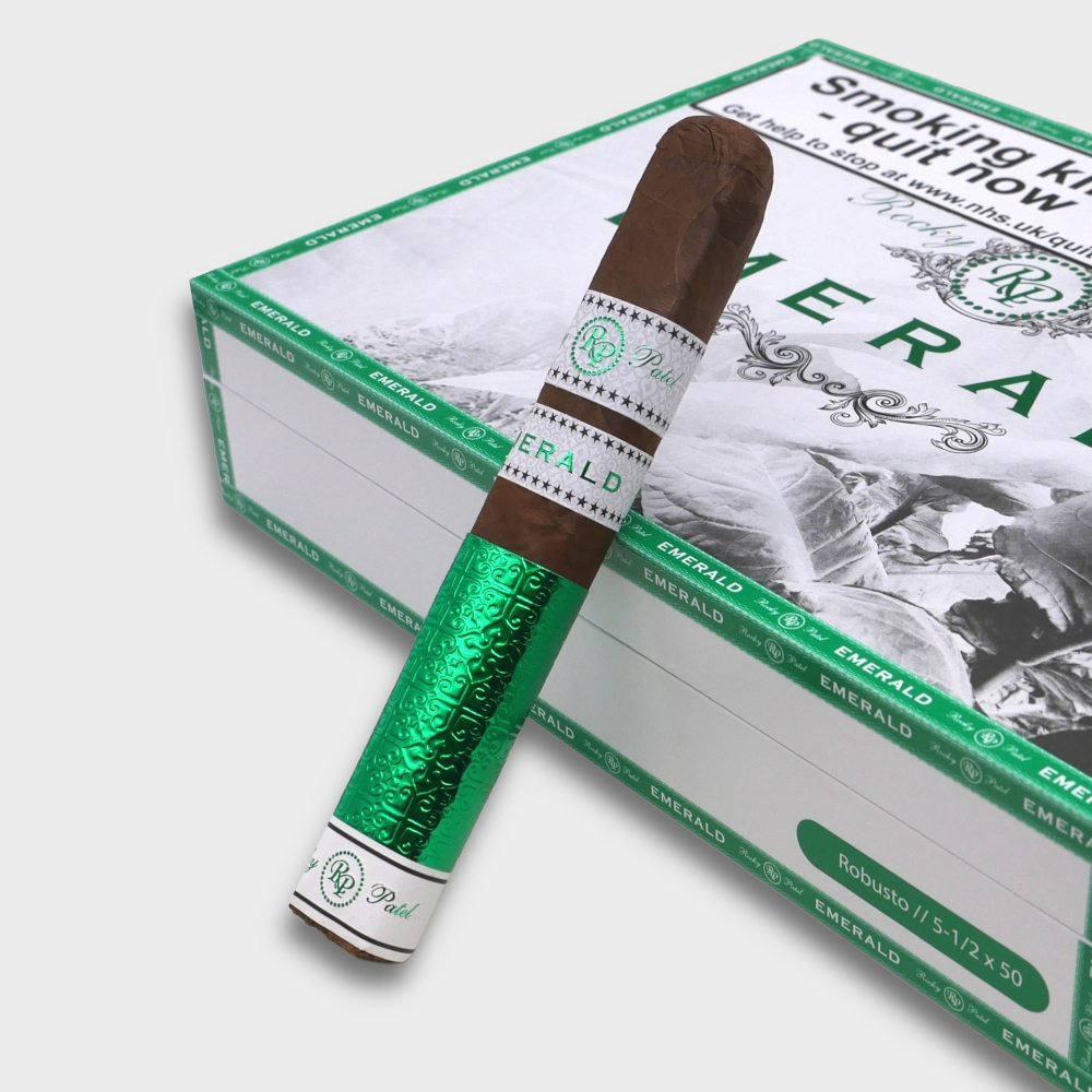 The Rocky Patel Emerald cigar, launched in late 2024, is a smooth, medium-bodied, box-pressed cigar featuring an Ecuadorian Habano wrapper, Nicaraguan & Mexican binders, and Nicaraguan/Honduran fillers, offering notes of sweetness, spice, leather, and pepper, ideal for both new and experienced smokers seeking a lighter, complex smoke from Rocky Patel.
