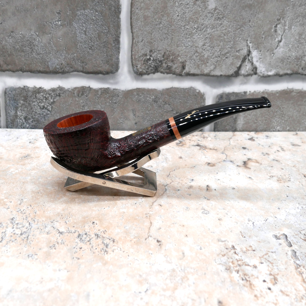 Every year since 1985, Savinelli continues the tradition of its Collection Series. With a brand new model every year, this Series is well-known among collectors. In 2022 we present a short half-bent Dublin. Its clean cut on the bowl, enhances the rim, which shows bird’s eye motives. The Collection series has four different finishing: smooth natural (only 62 numbered pieces), smooth brown, sandblasted and sandblasted with a smooth top. Black acrylic stem with elegant insert in natural colour. A brass plate indicating the year is set on the shank.