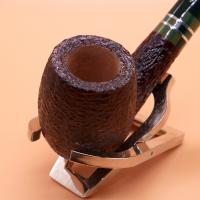 The Foresta series is available in 2 finishes: smooth natural and rusticated brown. A dark green acrylic stem with a playful trio of bands, with cream and green colours connected by a silver ring, characterize this elegant pipe.