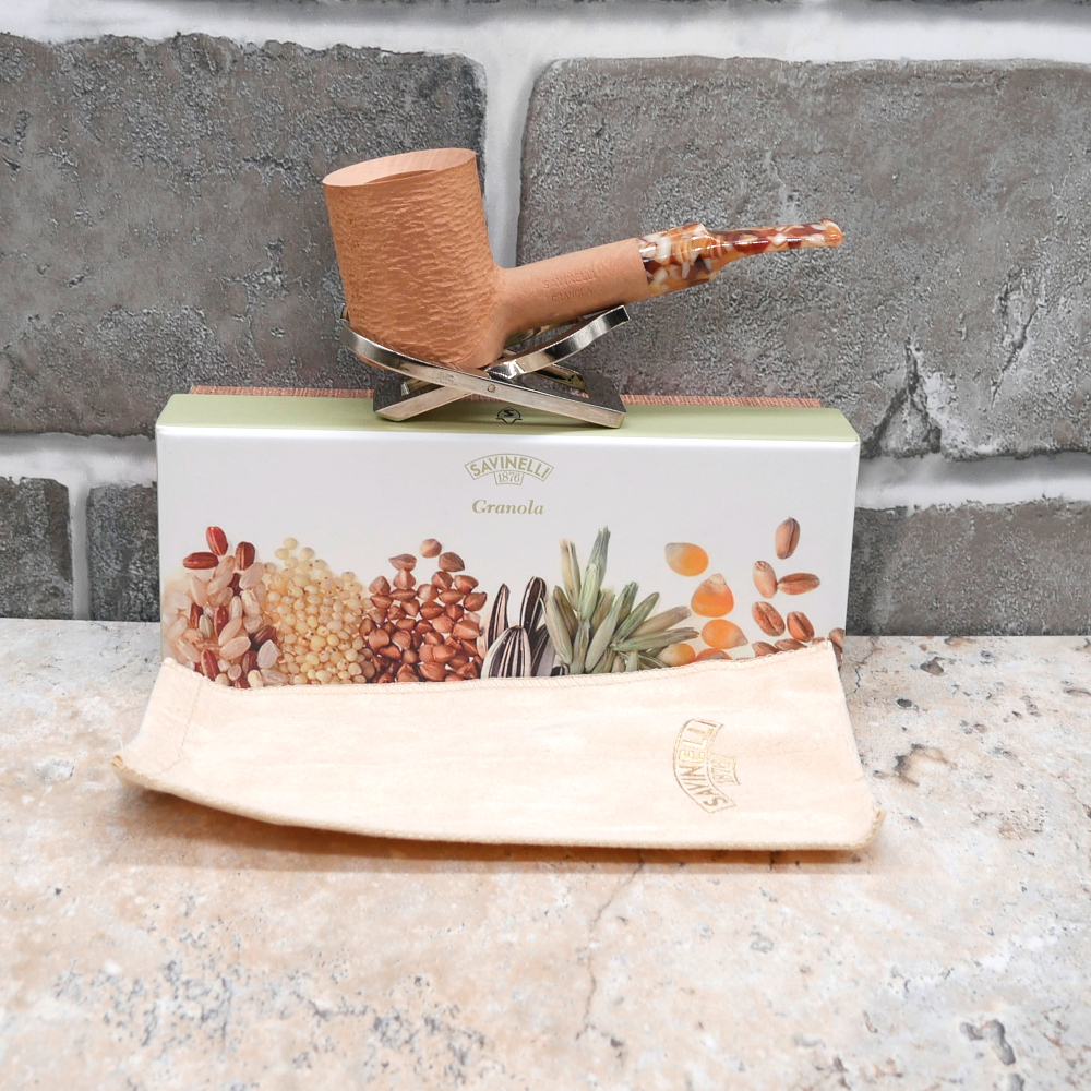From the Natural series, Savinelli have released a new flawless line: The Granola. Its acrylic stem shows warm brown motives that recall mixed cereals and granola. This features a box with a dedicated design enriches the product.