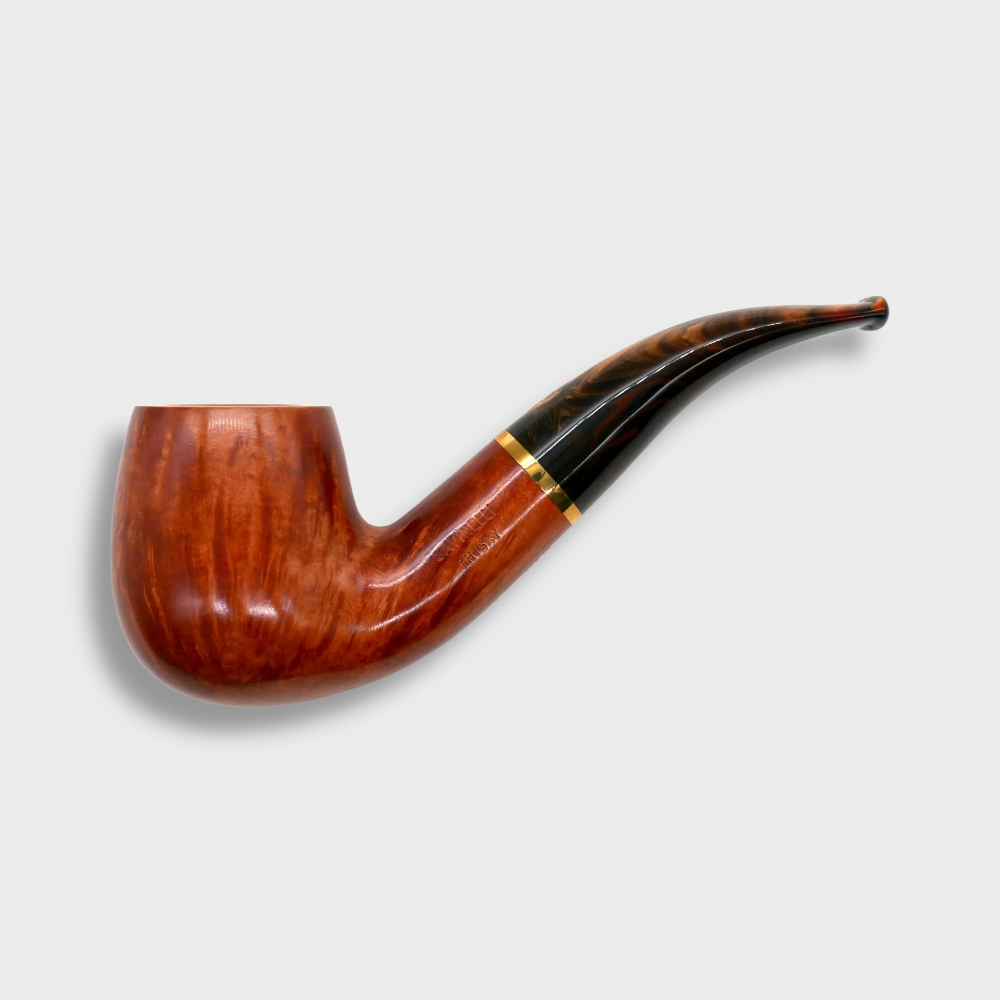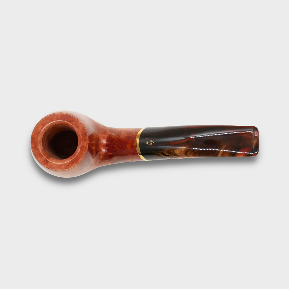 The Whisky series belongs to the Flavour line and is characterized by a whisky-flavoured bowl. The pipe is crafted in a smooth natural finishing and is offered in 5 different models. The stem is made of melange acrylic in warm brown tones, and an brass ring adds a touch of class to the pipe. The pipe is sold with its dedicated design box.