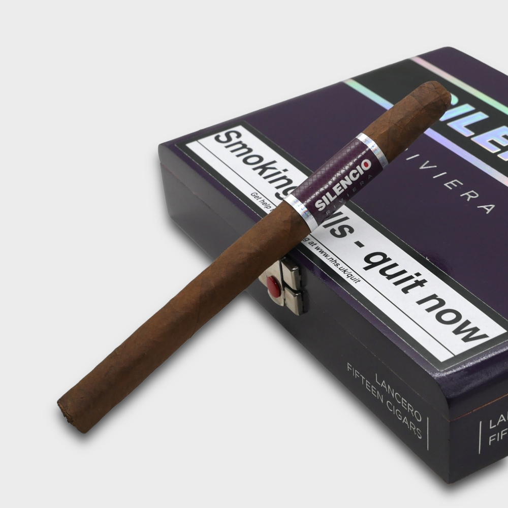 Silencio Riviera, an exquisite cigar that enters new territory for the brand. Riviera is the only Nicaraguan-rolled cigar in the Silencio portfolio, the only box-pressed offering in the collection and the only one to feature a San Andrés wrapper. Featuring a medium-to-full-bodied, three-country blend, Silencio Riviera is a unique expression, ideal for those wanting to experience a new view of luxury.