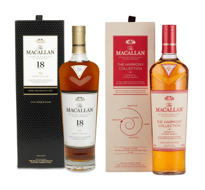PRICE SLASH!! - Buy a bottle of Macallan 18 Year Old 2023 Sherry Oak - 43% 70cl & Macallan Harmony Arabica Collection - 44% 70cl for a special, limited time bundle deal of £459