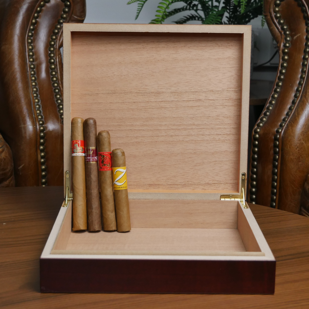 This sampler includes everything you need to get started with your new humidor in our humidor set up kit, as well as four beautiful cigars so it won't stay empty for too long!