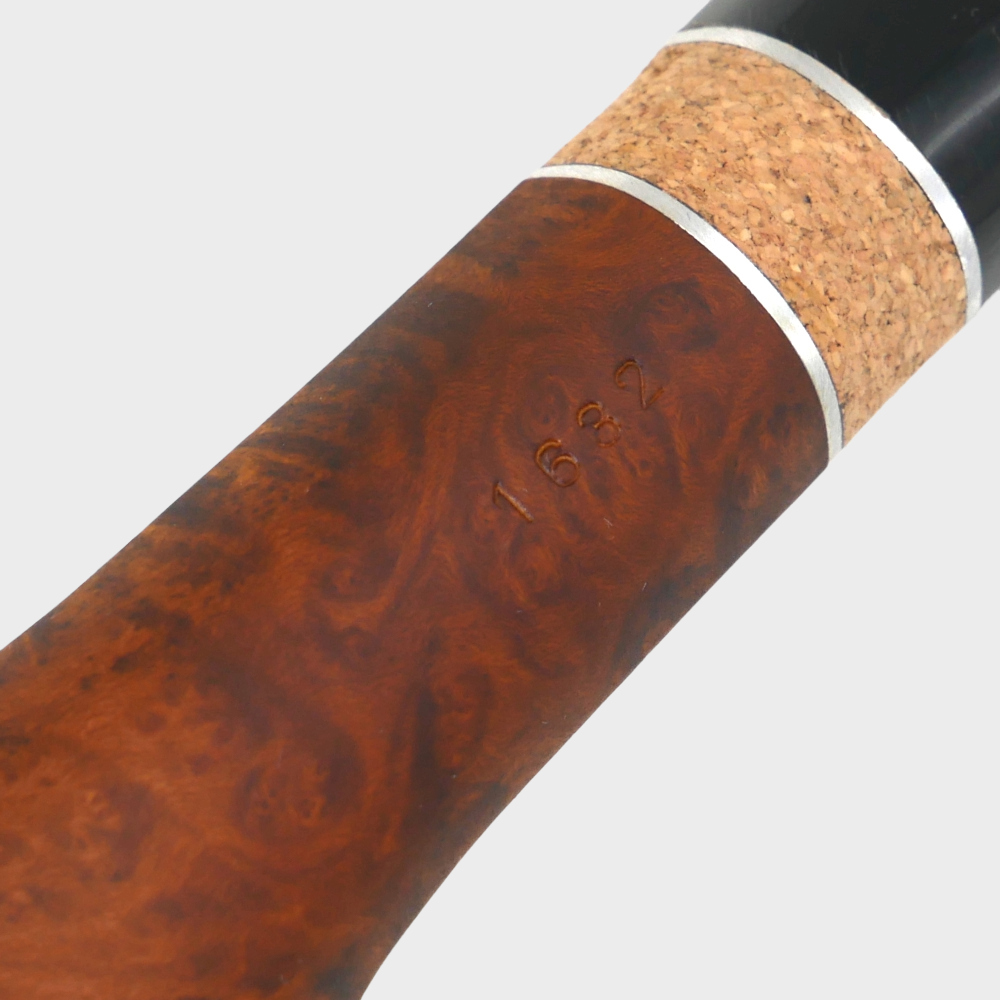 Puristic and timeless. Two natural products – briar wood and cork – perfectly matched: a matt dark brown surface a high-quality, marbled cork ring.