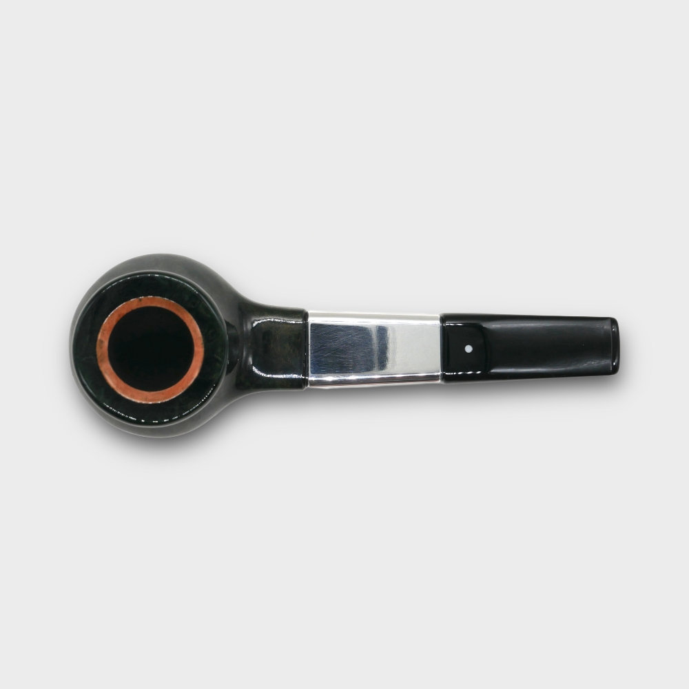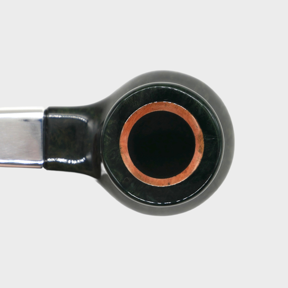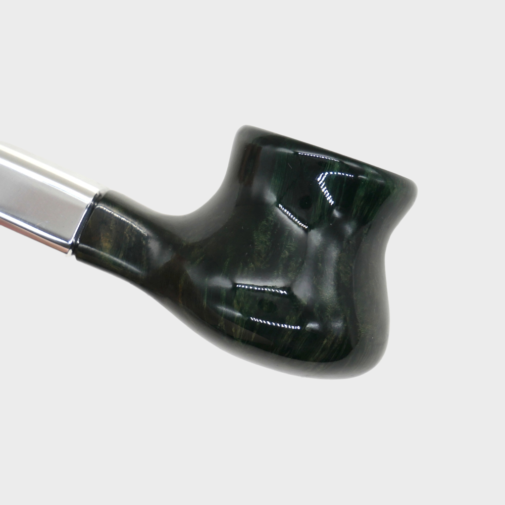 "Champagne” was developed in collaboration with designer Felix Hoffmann. Its inspiration comes from the iconic shape of a champagne cork, a symbol of elegance, joy and refined pleasure. At its centre lies a finely crafted aluminium element, lined with wood on the inside to ensure high-quality smoking experience. The pipe stands out with a distinctive silhouette and fine artisanal craftsmanship. The matte dark brown with a natural top accentuates the distinctive shape.