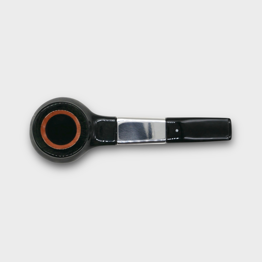 "Champagne” was developed in collaboration with designer Felix Hoffmann. Its inspiration comes from the iconic shape of a champagne cork, a symbol of elegance, joy and refined pleasure. At its centre lies a finely crafted aluminium element, lined with wood on the inside to ensure high-quality smoking experience. The pipe stands out with a distinctive silhouette and fine artisanal craftsmanship. The matte dark brown with a natural top accentuates the distinctive shape.