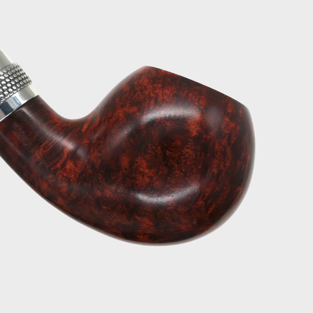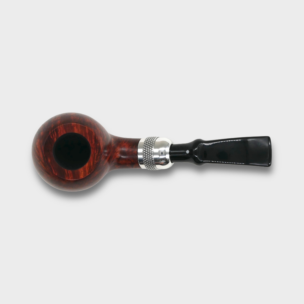“Chianti” combines classic design with a reinterpreted olive-shaped silver ring on the stem – a detail that unites extravagance and tradition. The warm brown finish with a smooth wax polish highlights the natural grain of the briar wood.