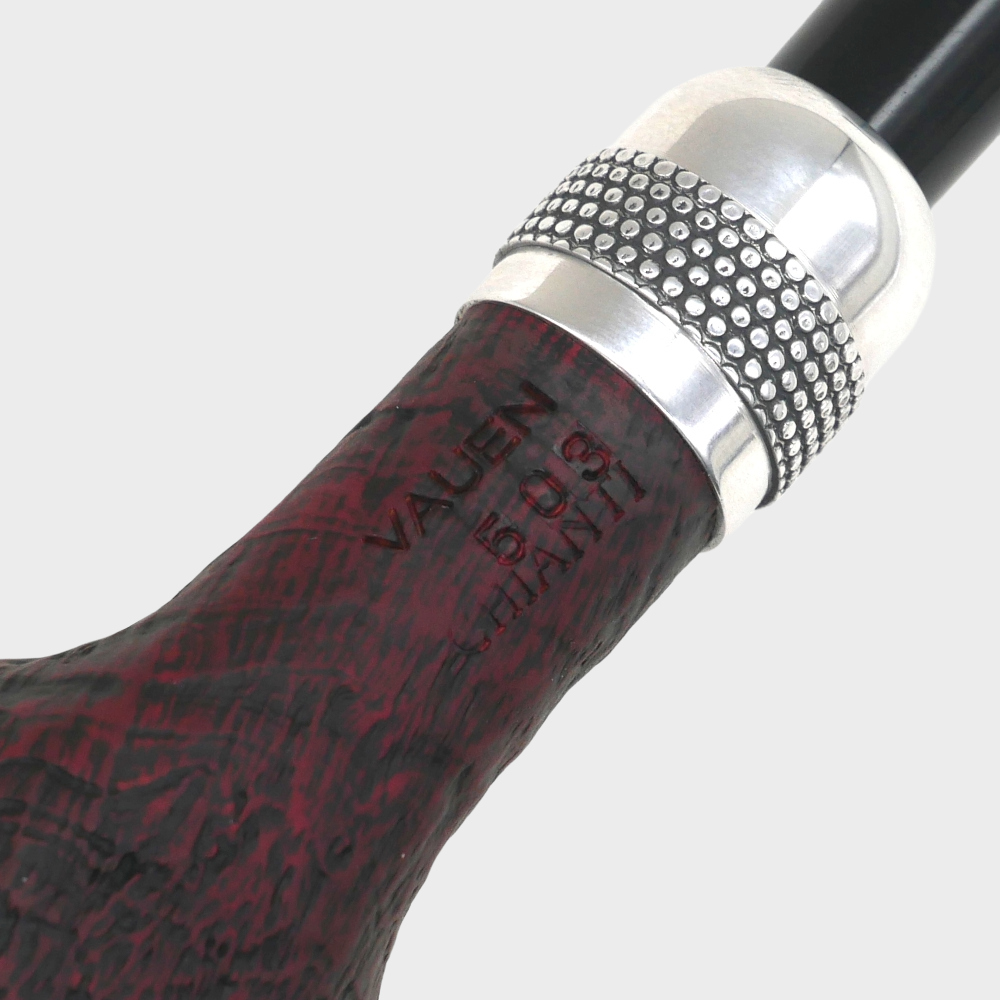 “Chianti” combines classic design with a reinterpreted olive-shaped silver ring on the stem – a detail that unites extravagance and tradition. The warm brown finish with a smooth wax polish highlights the natural grain of the briar wood.