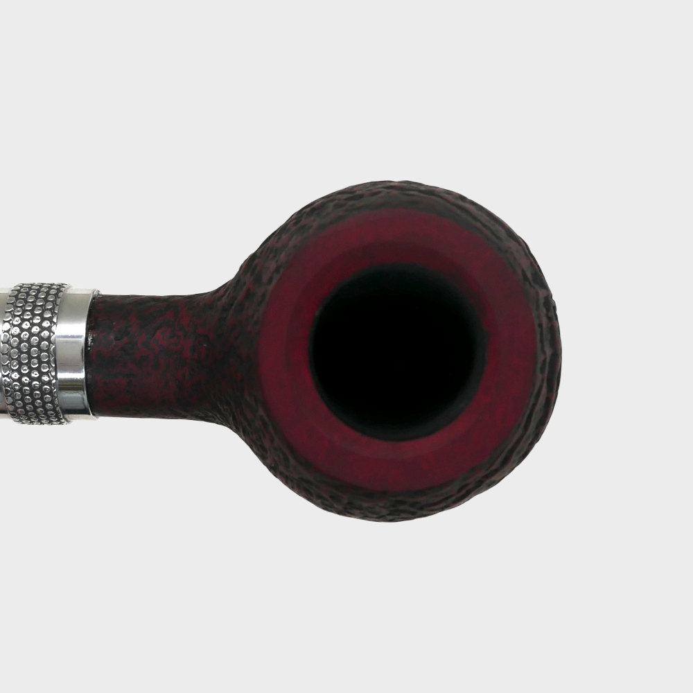 “Chianti” combines classic design with a reinterpreted olive-shaped silver ring on the stem – a detail that unites extravagance and tradition. The warm brown finish with a smooth wax polish highlights the natural grain of the briar wood.
