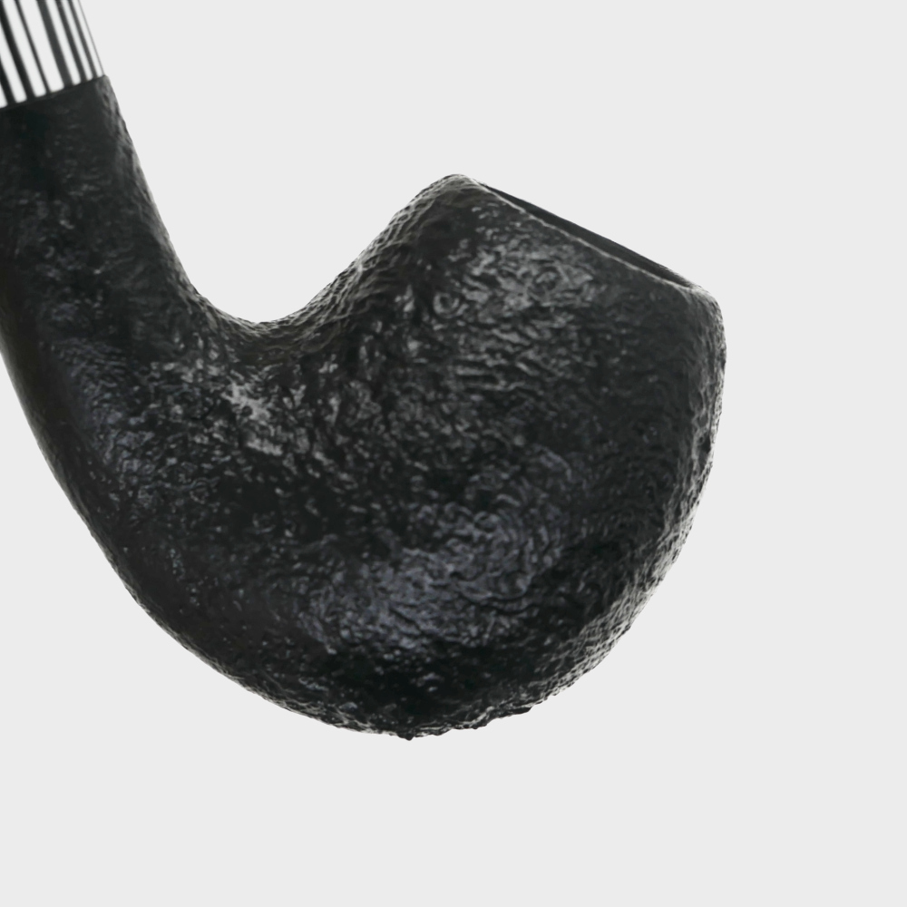 The Hippo is a stunning pipe with a black, sandblasted surface and the zebra pattern ring, making this pipe an attractive eye-catcher. The ring merges seamlessly into the black mouthpiece.
