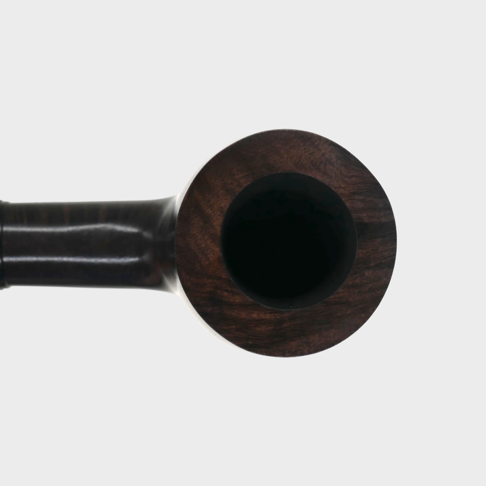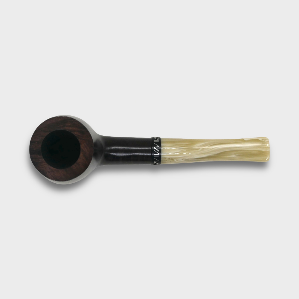 A black matt ring with silver relief letters ‘V’ and ‘N’, which are an important element in the history of the VAUEN brand. The horn-look mouthpiece and the dark brown pipe bowl are reminiscent of typical Viking drinking horns.