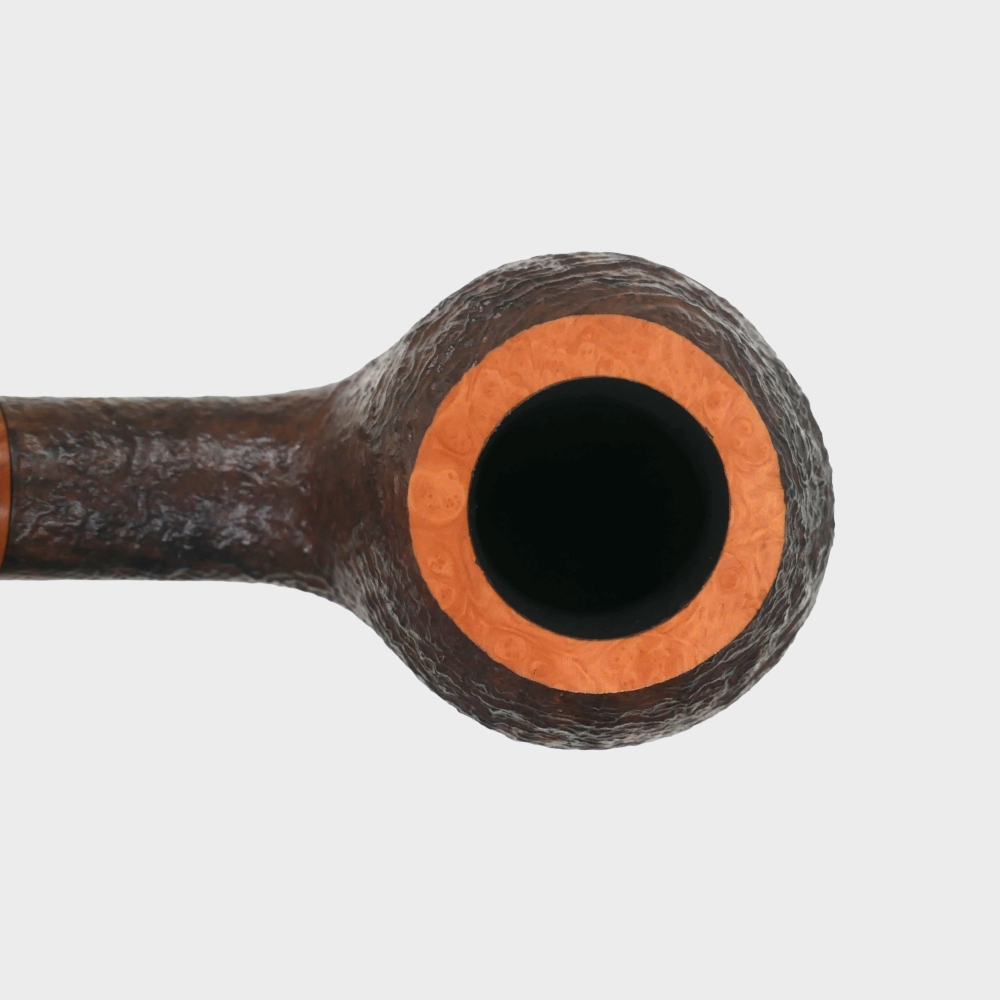 The Mokka is an elegant deep brown, like a delicious cup of the finest mocha, characterises the appearance of this straightforward pipe. As a successful contrast to the noble sandblast surface, the natural briar wood appears at the top of the bowl and at the end of the stem. In this way, it radiates calm and brilliance at the same time. The relief-like protruding grain ensures optimum heat dissipation. Enjoy the aroma of your tobacco in this pipe in just the same way a coffee connoisseur would enjoy their fine mocha.