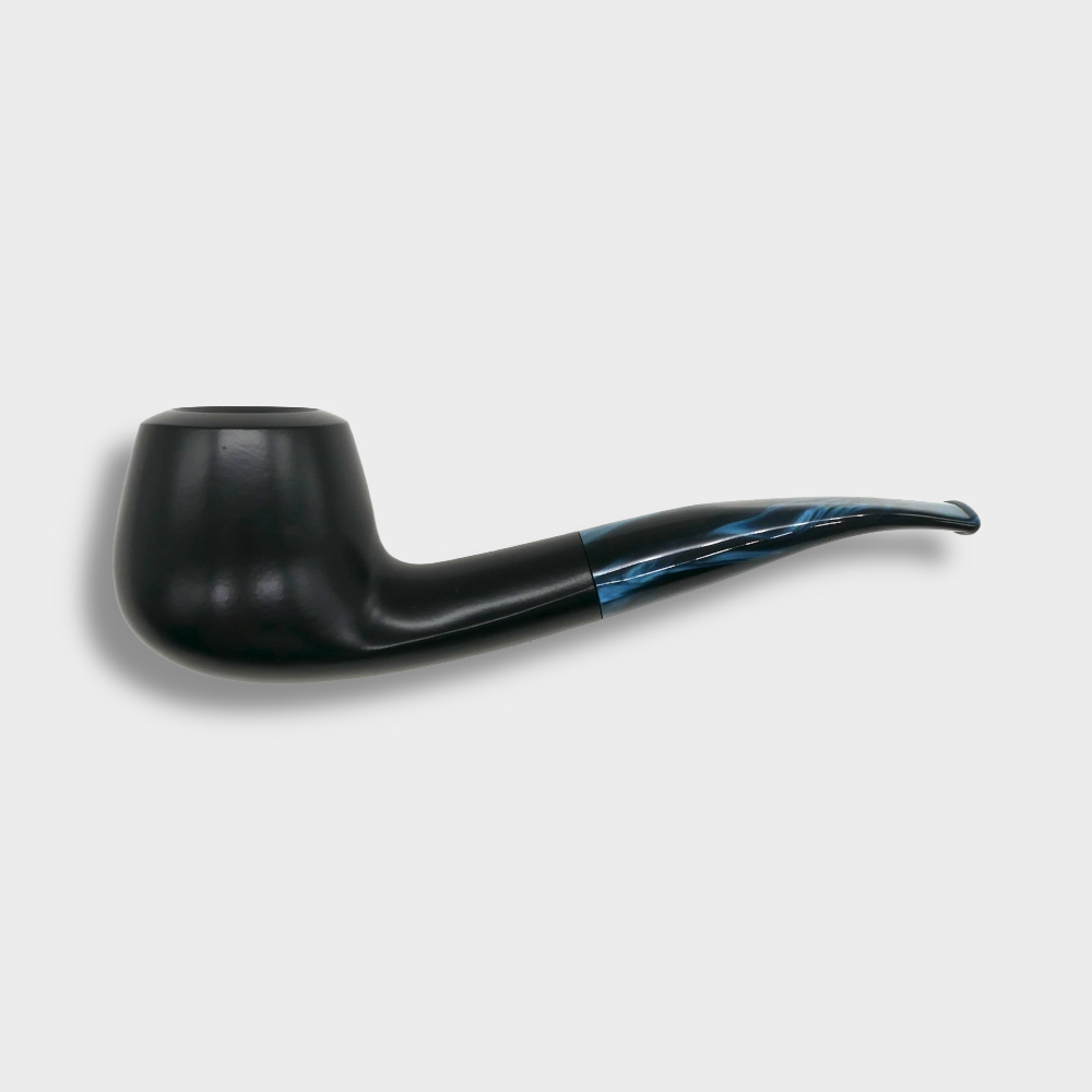 The silky-matte black finish of “Ray” is designed to direct the eye to the shimmering blue acrylic mouthpiece, which reveals subtle colour nuances when in motion and creates a striking effect. “Ray” is aimed at pipe enthusiasts who appreciate calm design, precise craftsmanship and subtle accents.
