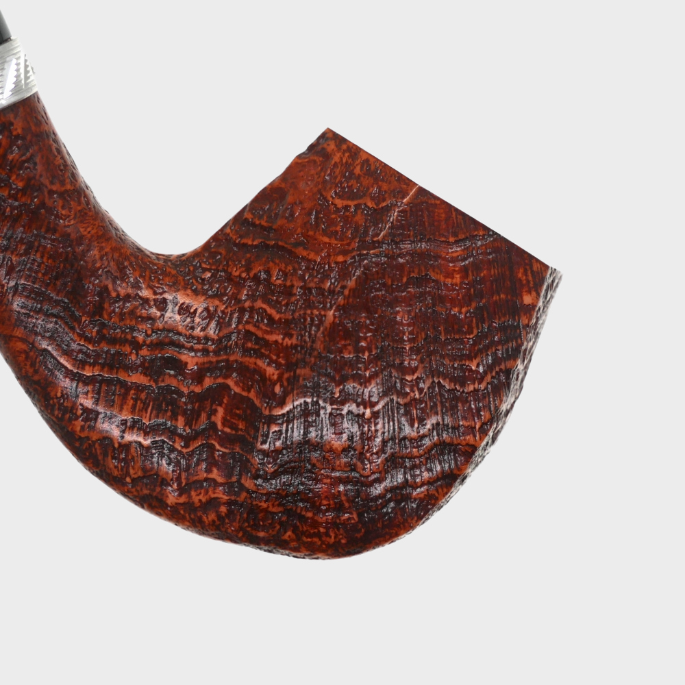 Troja impresses with timeless clarity and an attractive colour scheme. Highlighted by the silver-coloured ring, whose finely detailed relief with glossy and matte sections adds refined accents. The fine sandblasting in a warm orange tone gives the series an inviting character and makes every smoking experience special.