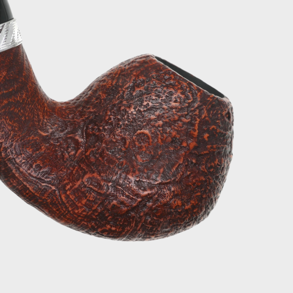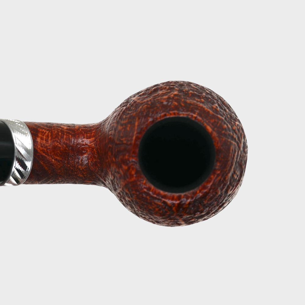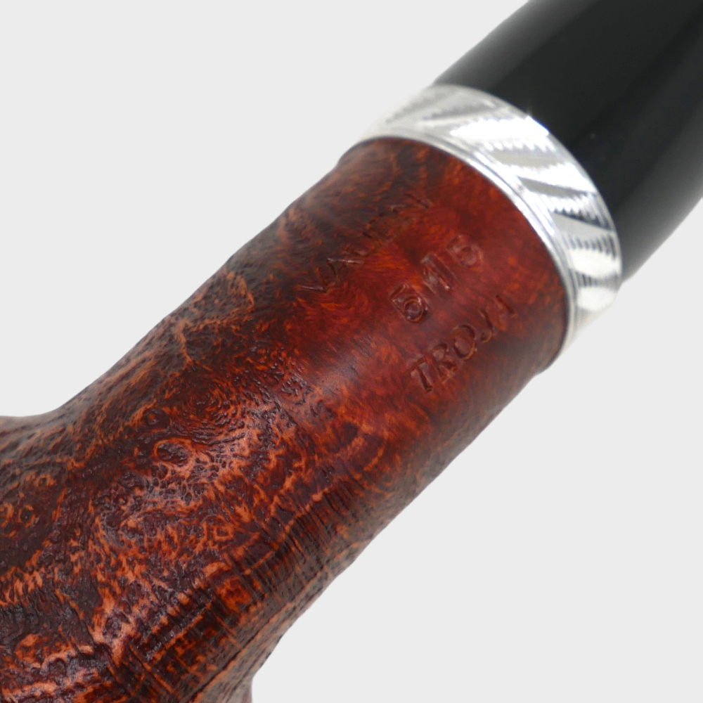 Troja impresses with timeless clarity and an attractive colour scheme. Highlighted by the silver-coloured ring, whose finely detailed relief with glossy and matte sections adds refined accents. The fine sandblasting in a warm orange tone gives the series an inviting character and makes every smoking experience special.